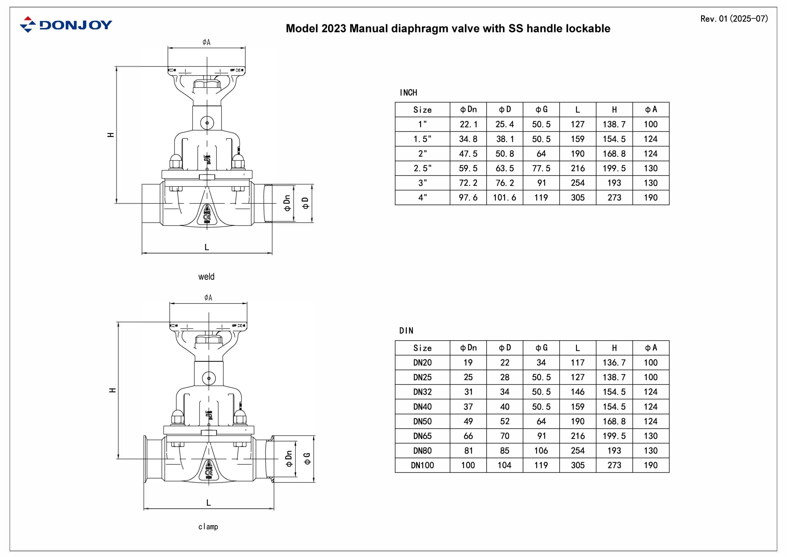 Donjoy Technology offers lockable sanitary Diaphragm Valves. It’s designed with a locking mechanism at the valve stem position. When we turn the handwheel to control the valve stem to move the valve disc to the desired position, we only need to operate the locking mechanism to fix the valve disc to ensure that it will not move at will, suitable for use in aseptic areas or the pharmaceutical industries, Prevent leakage risks or adjustment deviations caused by accidental valve loosening, which may affect production quality or cause safety accidents